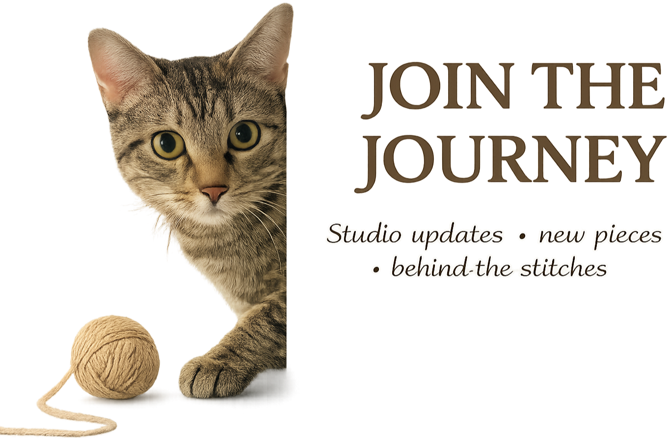 This space is where I share what’s happening behind the yarn — works in progress, finished pieces, studio moments, and the occasional appearance of a certain supervising cat.